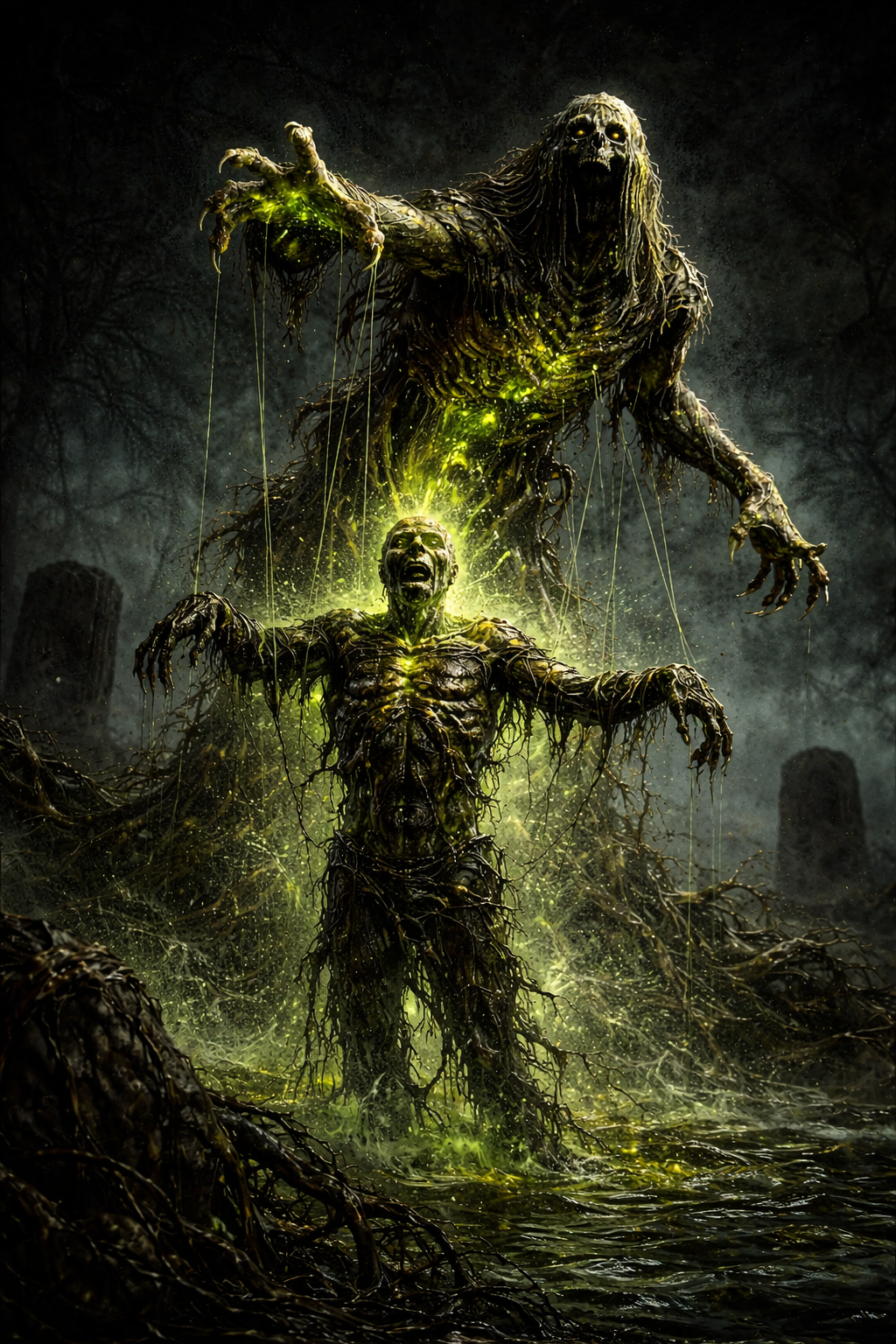 Walls do not stop it. Floors do not bar it. Wood softens, stone weeps, and iron corrodes as it presses through, leaving behind damp stains that burn the skin and refuse to dry. Witnesses report the sound first—a slow, wet pull, like something heavy being dragged through mud just out of sight.